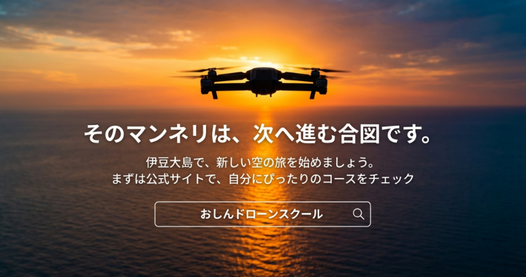 東京都大島町、通称「伊豆大島」。「おしんドローンスクール」は、日本初の離島に開校されたドローンスクールです。 ドローン国家資格をただ教えるだけでなく、“体験”として心に残すことにこだわっています。海・山・風ー ー 伊豆大島の大自然は、まさに “ドローンを飛ばしたくなる場所”。ただの学びではない、 「未来のスキル×最高の体験」をぜひ体感してください。