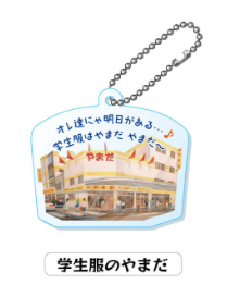学生服のやまだは、1947年創業以来、静岡で学生服販売量No.1を誇る老舗です。高品質な服地や専用の生産ラインを確保した独自の製品は、静岡の学生たちの象徴といえます。キーホルダーのデザインでは、あのCMが再現されており、知らず知らずのうちにCMのメロディーを口ずさんでしまいます。