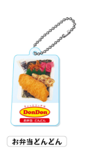 お弁当どんどんは、静岡市清水区発祥の弁当チェーンです。特に30年以上続くローカルCM「ハッピーグルメ弁当」のフレーズは、静岡県民なら誰もが口ずさめるほど有名です。キーホルダーでは、のり弁をモチーフにした愛らしいデザインが採用され、見るだけで心が温まる仕上がりです。