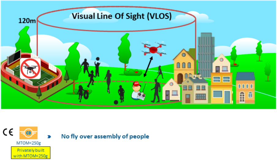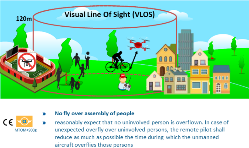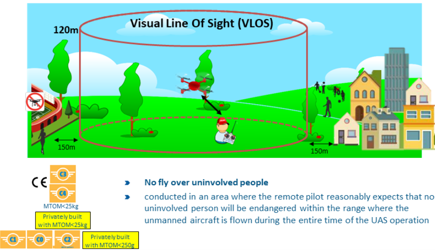 このライセンスでは、人や建物に近づけることができますが、リスクを避けるため、近距離での飛行は制限されます。