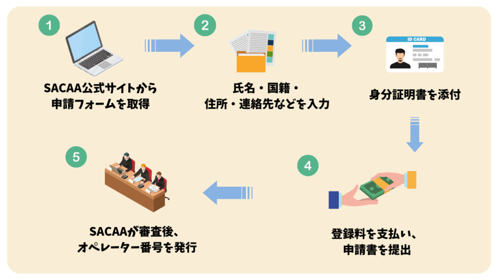 登録手続き渡航前にSACAAでオペレーター・機体登録を完了しておくことが推奨される