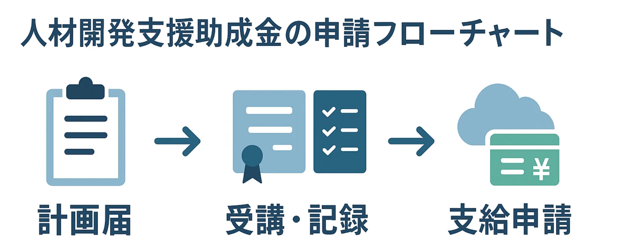 - 支給申請(訓練後):終了翌日〜2か月以内に証憑を添えて申請。 電子申請は**雇用関係助成金ポータル(GビズID要)で可