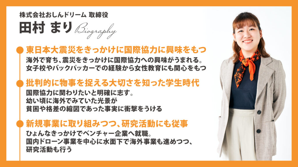 ドローン×女性教育×国際協力×研究・・・全然違うことをやっているようで、何かしらが実はどこかで繋がっているような内容です おしんドローンスクールがなぜドローンに取り組んでいるかも垣間見えると思います。是非読んでみてください✨詳しい記事はこちら!「学びに終わりはない?田村まりの仕事と研究どちらも楽しむ生き方」
