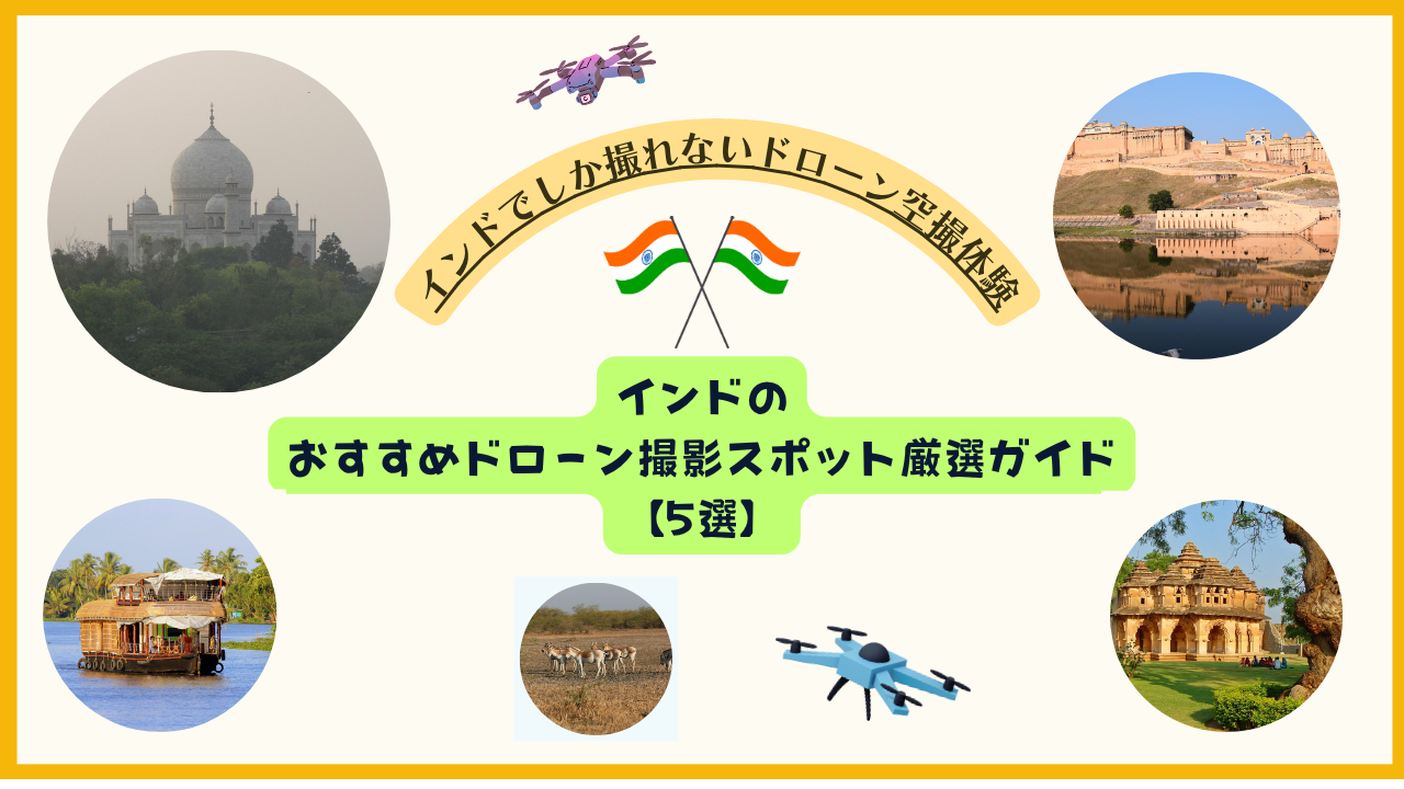 インドには、壮大な歴史遺産や自然の風景、人々の暮らしが織りなす独特の空間が広がっています。タージ・マハルの神秘的な遠景、色彩豊かなアンベール城、水上生活のアレッピー、古代都市ハンピ、そして野生動物と塩原が共存するカッチ湿地帯。どのスポットも、空からしか捉えられない表情を持っています。規制やルールを守りながら、安全で心を動かす映像作品をぜひ記録してみてください。