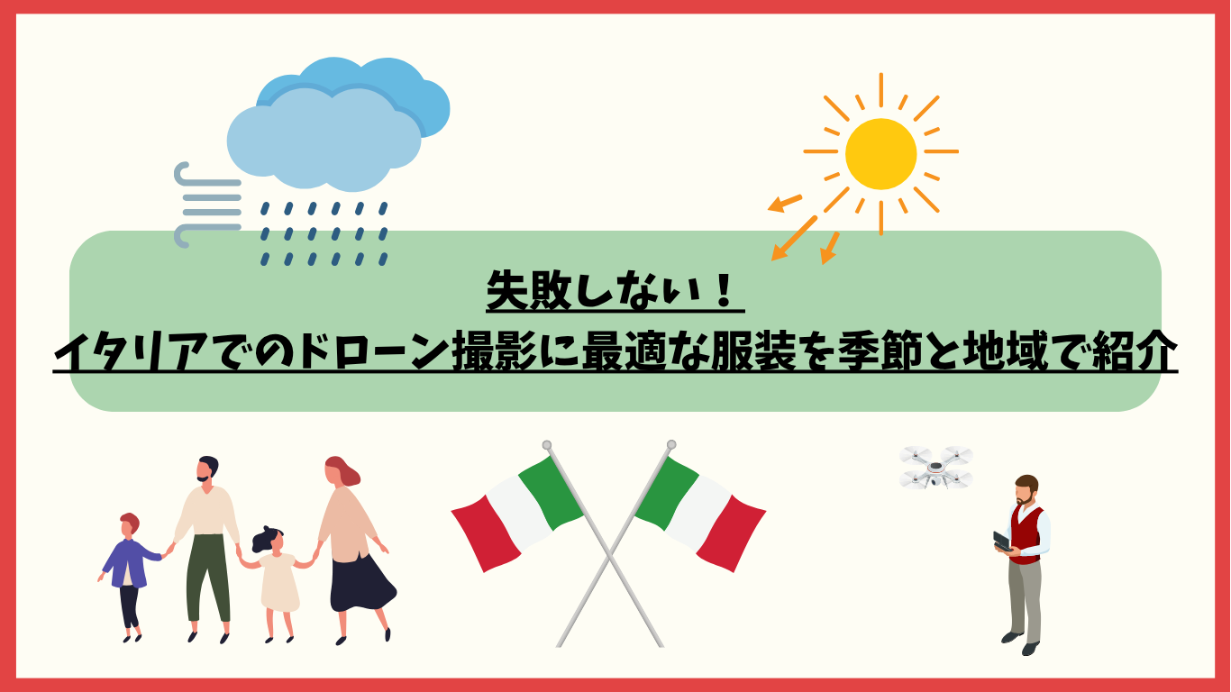 イタリアでドローンを飛ばす際、つい機材や飛行ルールにばかり目が行きがちですが、実は服装も快適で安全な撮影に欠かせない要素です。