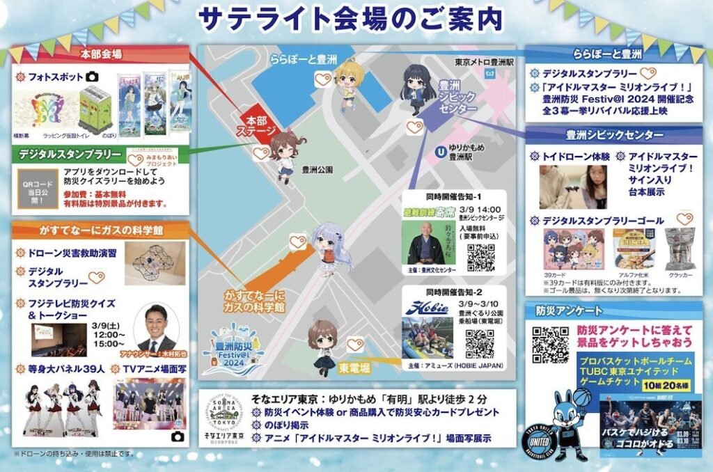 また、豊洲防災のイベントが今回「アイドルマスターミリオンライブ!」とコラボしており、当ブースにおいてもアイドルにお仕事をお願いしております。はたして誰なのかは、当日来てのお楽しみです!ご関心のある方、奮ってご参加ください☆