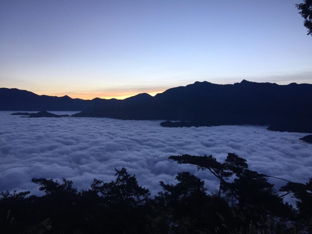 標高2000mを超える山々が連なり、古くから台湾先住民族ツォウ族の聖地としても知られ、阿里山森林鉄道や巨大な神木群など自然と人々の文化が融合した景観が広がっています。
